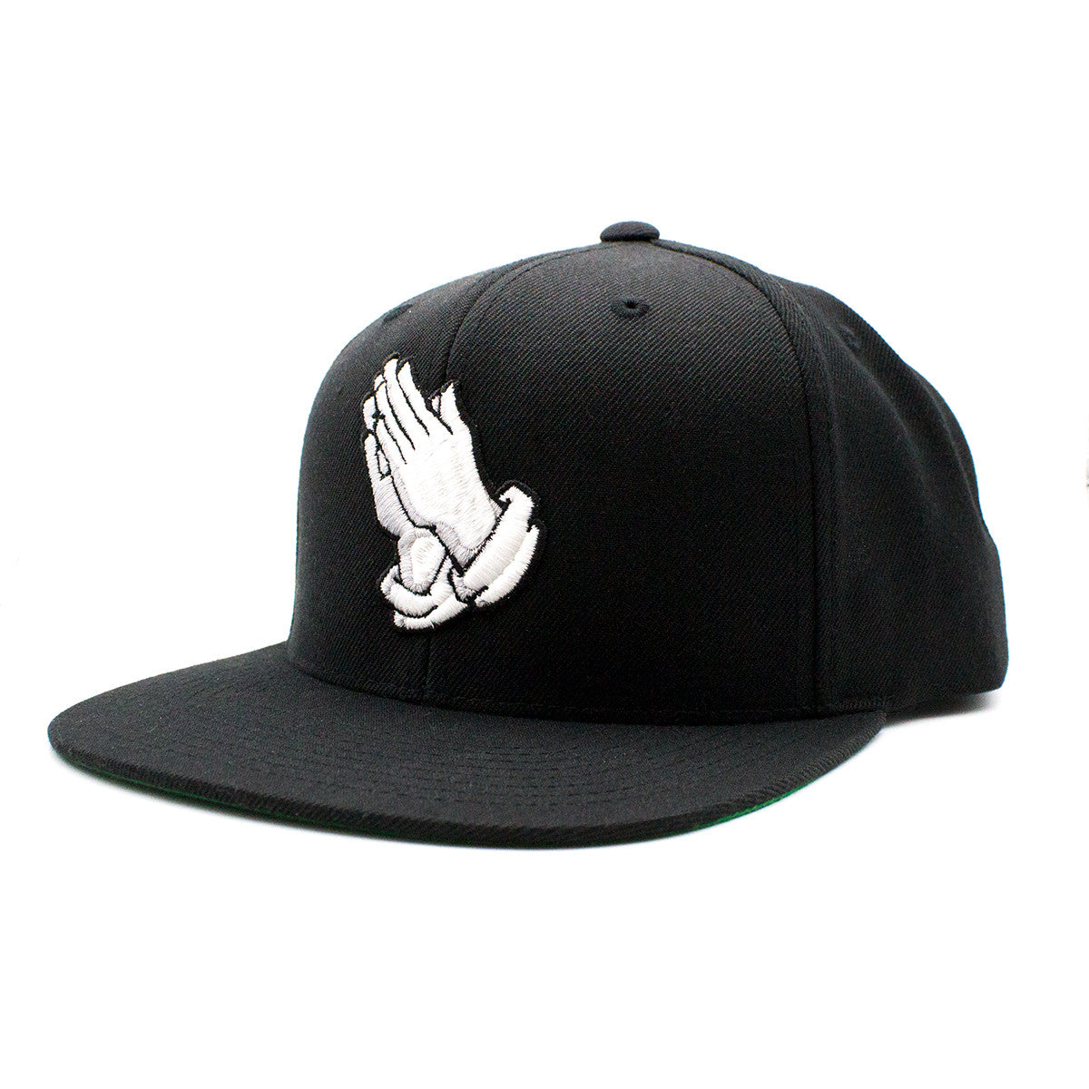Black wool blend with 2-color Prayer embroidered on front. Hat features an adjustable plastic snapback. One size fits most.